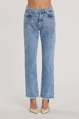 Pantalone LINDA_23 vita media con applicazioni pietre wild fit denim tencel