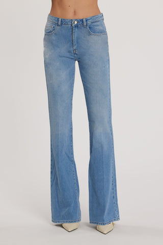 Pantalone SCHIFFER_210_SNZ vita media cinque tasche flaire fit denim blu