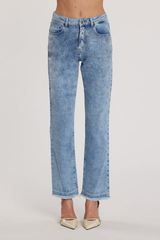 Pantalone ELLESPACK_20_SNZ vita media con spacchi laterali straight fit denim blu