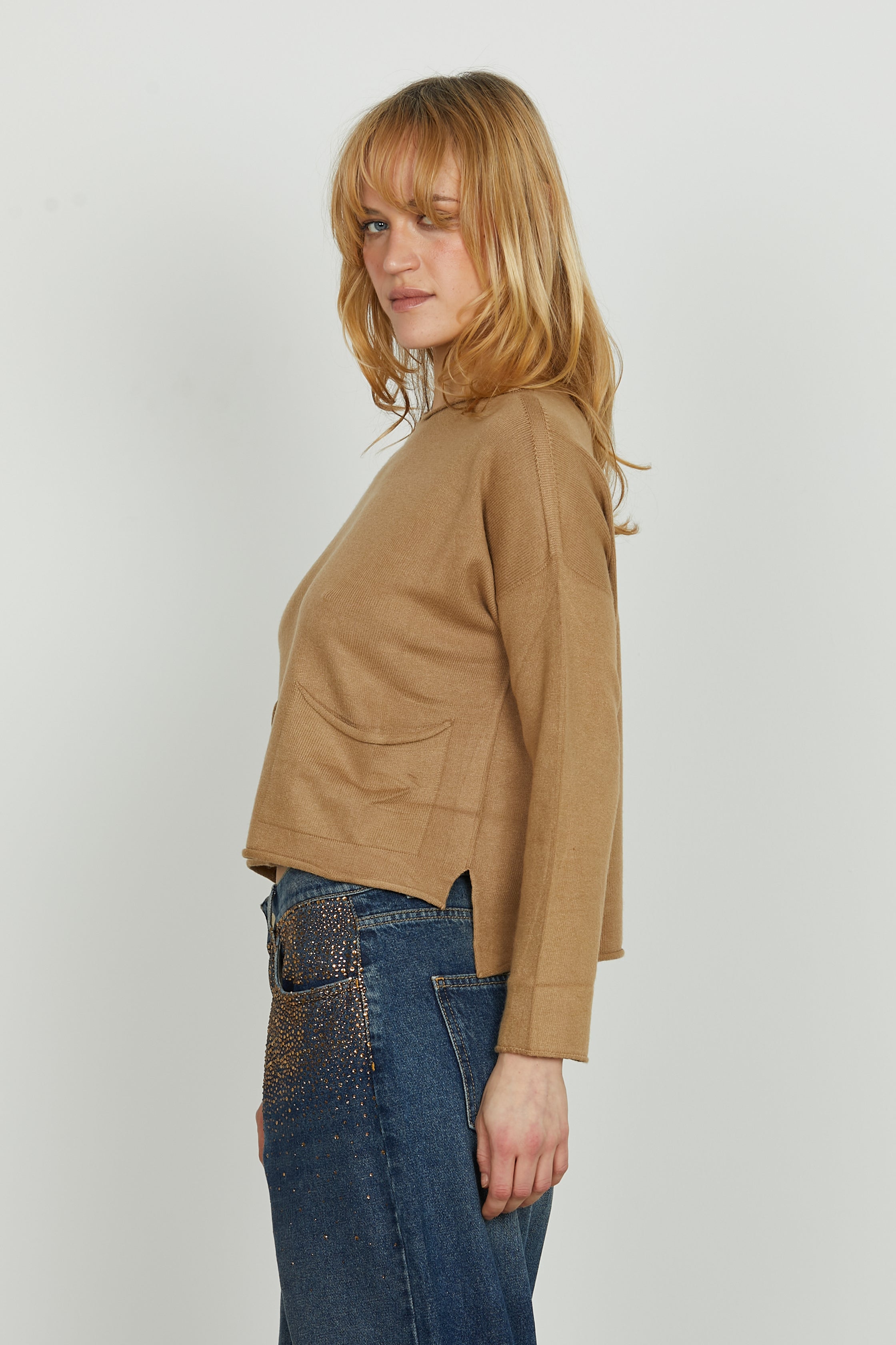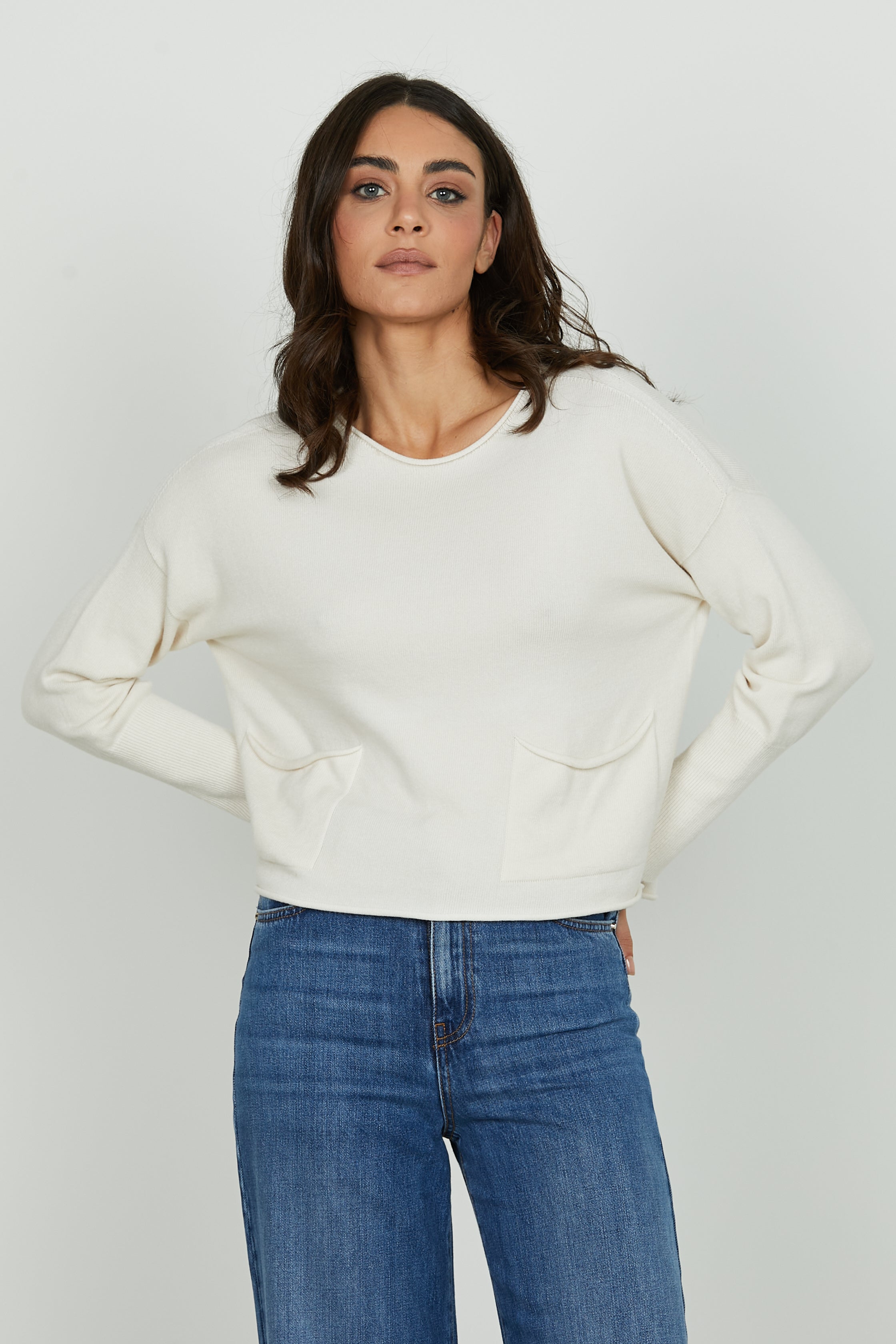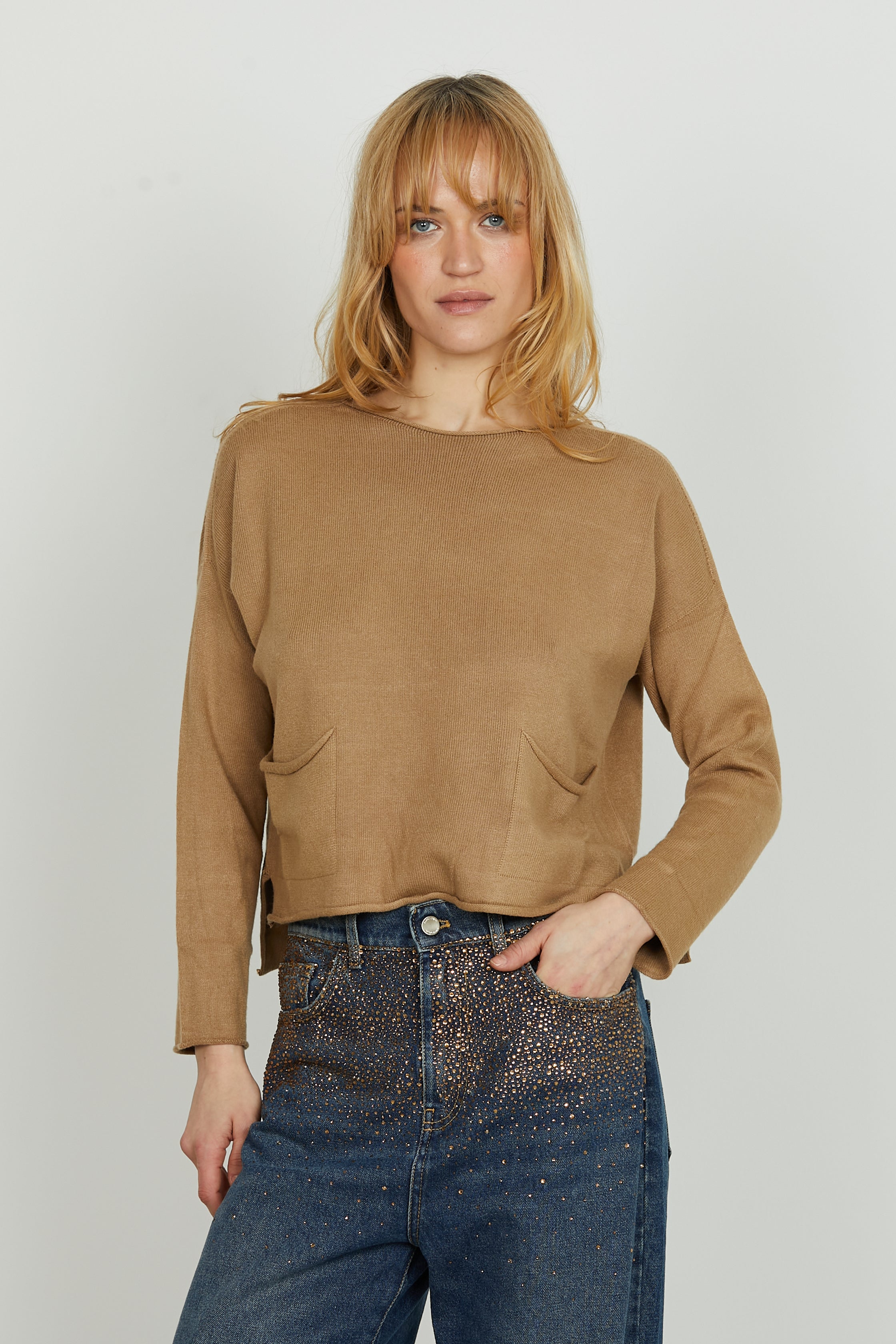 Maglia donna modello CURITIBA a manica lunga, pensata per un look casual ma curato nei dettagli. Realizzata in tessuto morbido e confortevole, presenta un fondo asimmetrico con spacchetti laterali, che conferisce movimento e slancio alla figura. Completano il design due tasche applicate sul fronte, pratiche e decorative.
