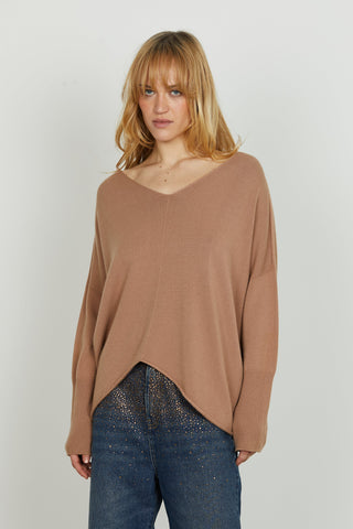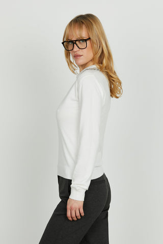 Maglia CRETAS manica lunga girocollo con goccia schiena più applicazione pietre