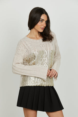 Maglia PSYLLOS manica lunga over con lavorazione trecce più spalmatura gold