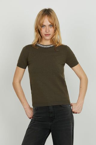 Maglia ACTERIA mezza manica con goccia più applicazione perline più strass
