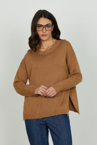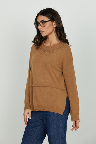 Maglia IDRAZ manica lunga girocollo con spacchi fondo più dettagli lurex