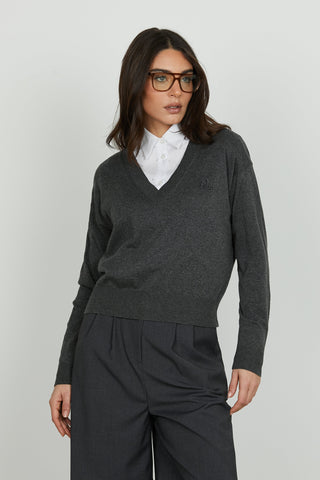 Maglia NIHOA manica lunga scollo v con colletto più applicazione strass