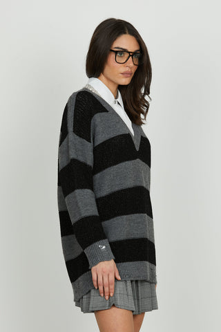 Maglia ARTEMIS lunga manica lunga scollo v righe con lurex più rotture