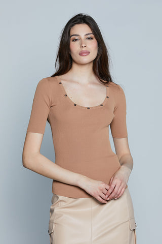 Maglia CUENCA M/M Scollo Madonna con Bottoncini Costina