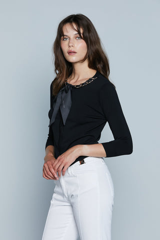 Cardigan VILAREAL M.3/4 con Applicazione Foulard Logo più Catena