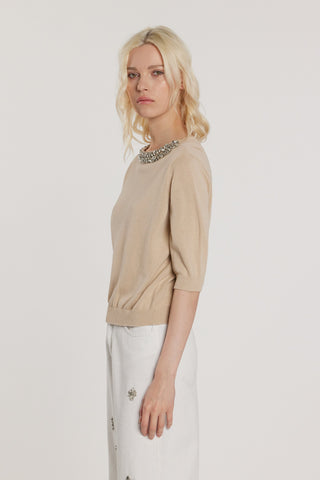 Maglia ELIZABETH maniche corte scollo alla madonna con fiocchi più strass