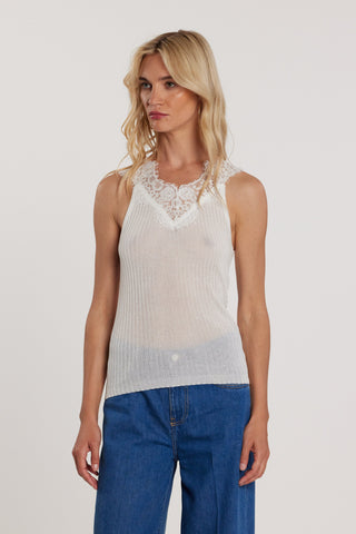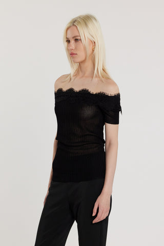 Maglia NOVAC maniche tre quarti scollo alla madonna con inserti pizzo costina