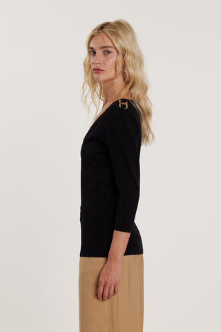 Maglia WINSLET maniche tre quarti scollo a V con bordi lavorazione smerlo più collana logo