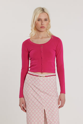 Maglia ADELE maniche lunghe scollo alla madonna con finta apertura più bottoni più applicazioni logo e fiocco