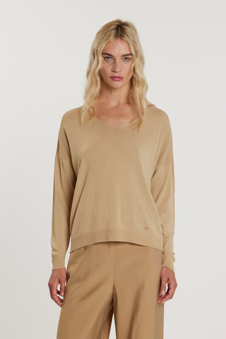 Maglia MARTINES maniche lunghe scollo barca più V rete effetto piquet più lurex