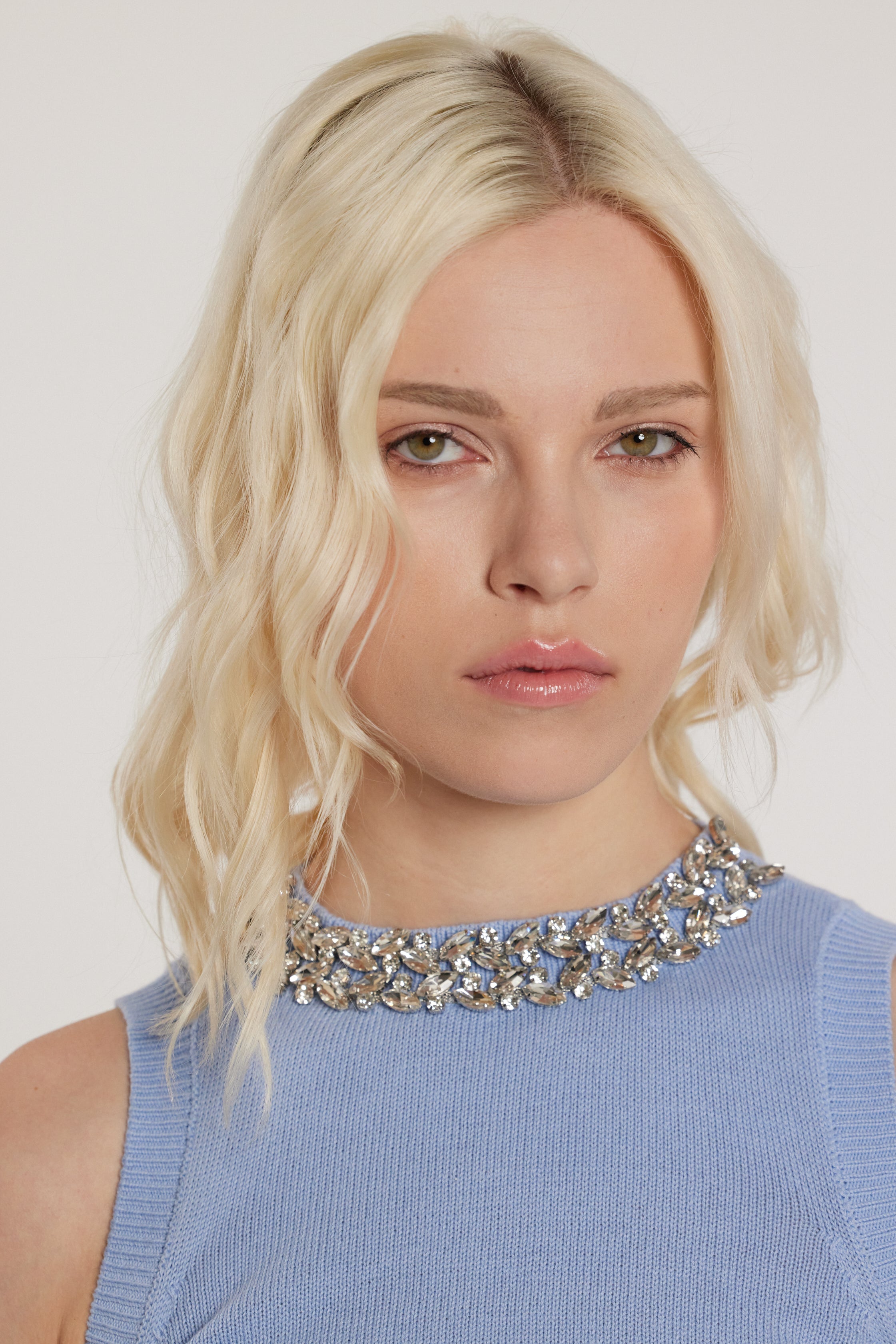 Canotta LAWRENCE smanicata con applicazioni gioiello più goccia più bottone