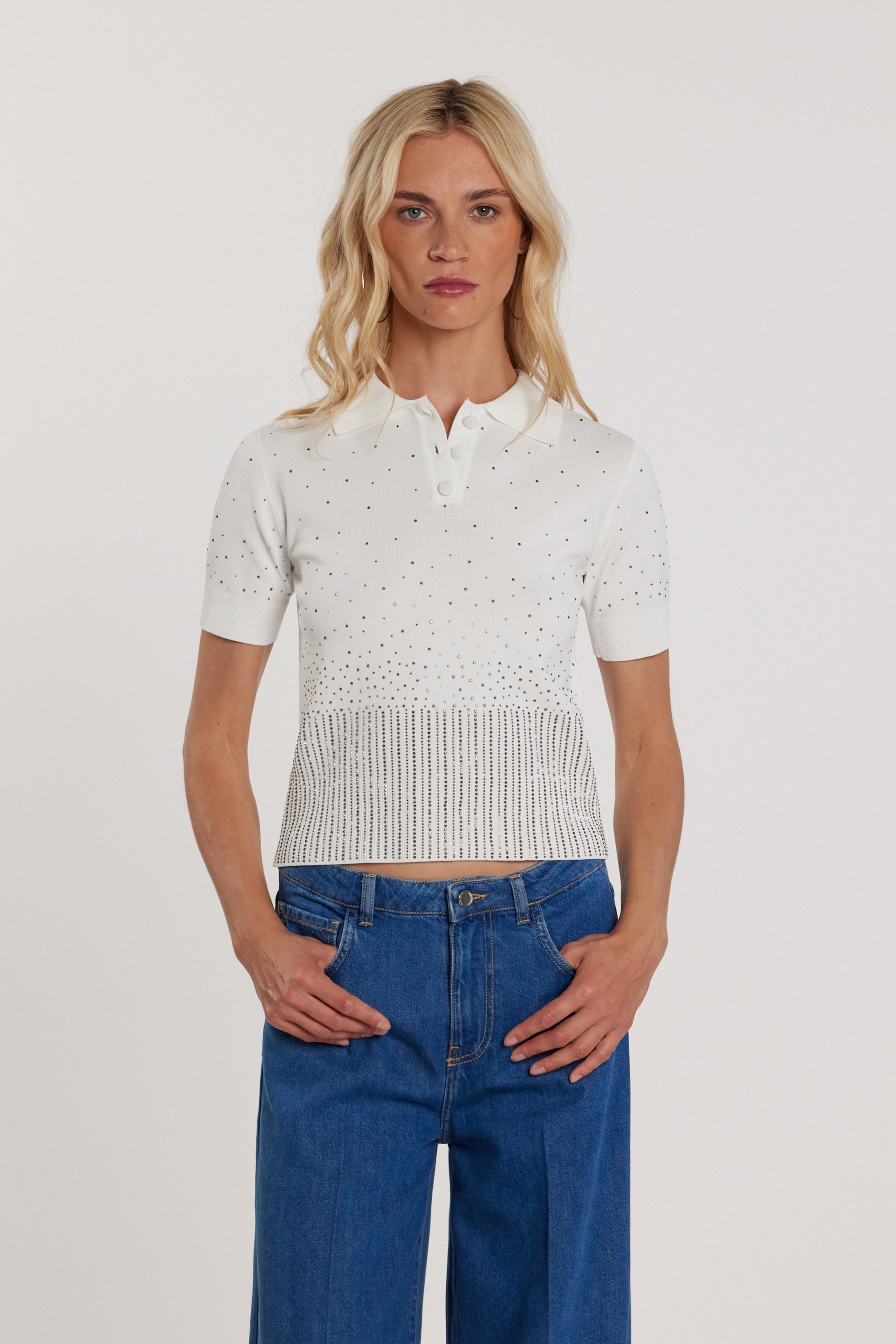 Maglia KERAM maniche corte polo con applicazioni strass