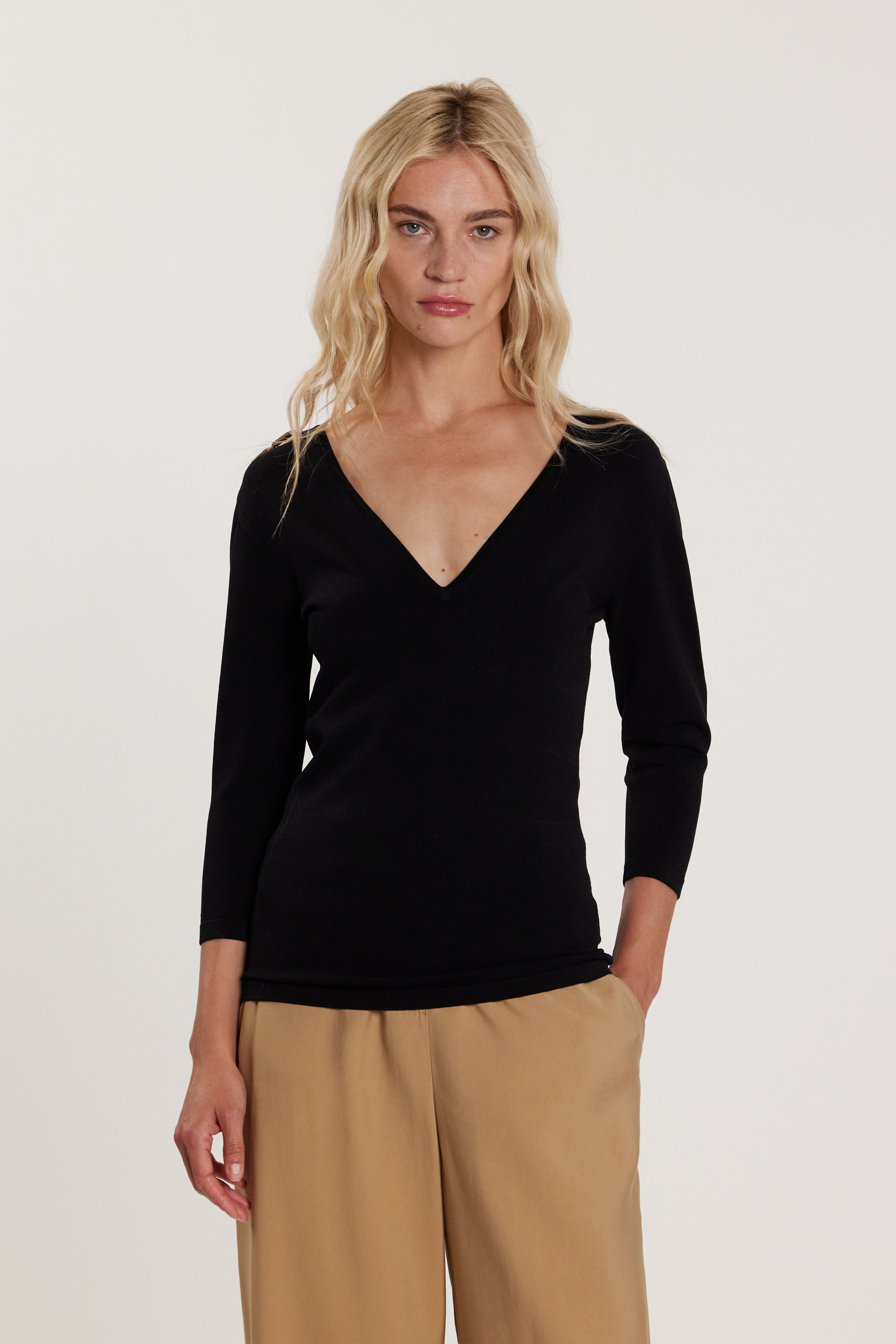 Maglia KIMERY maniche tre quarti scollo a V con passante logo
