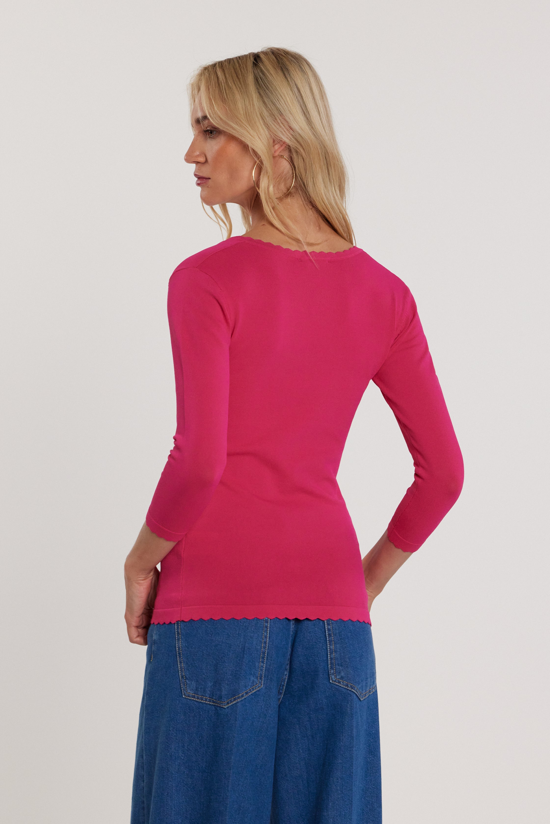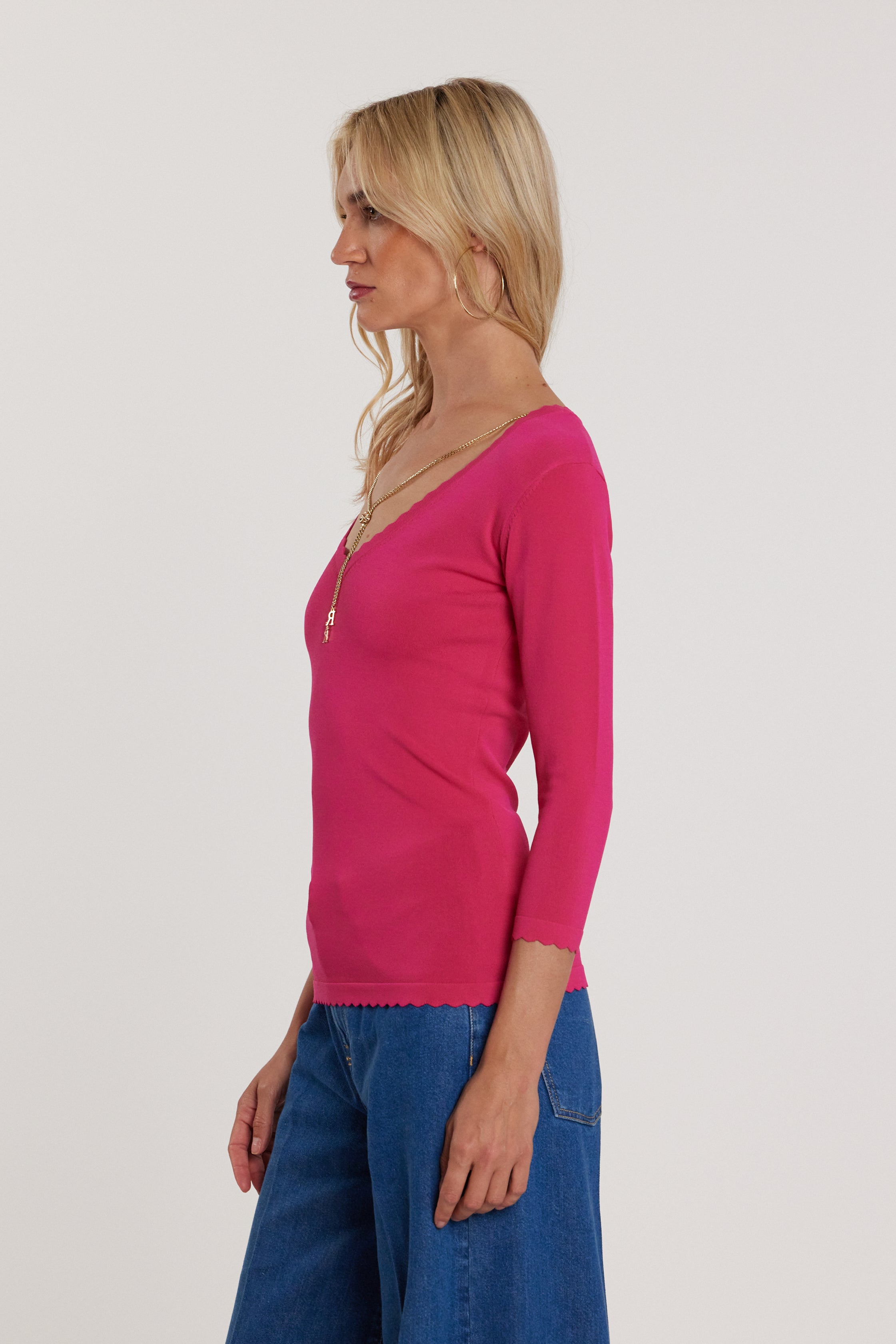 Maglia WINSLET maniche tre quarti scollo a V con bordi lavorazione smerlo più collana logo
