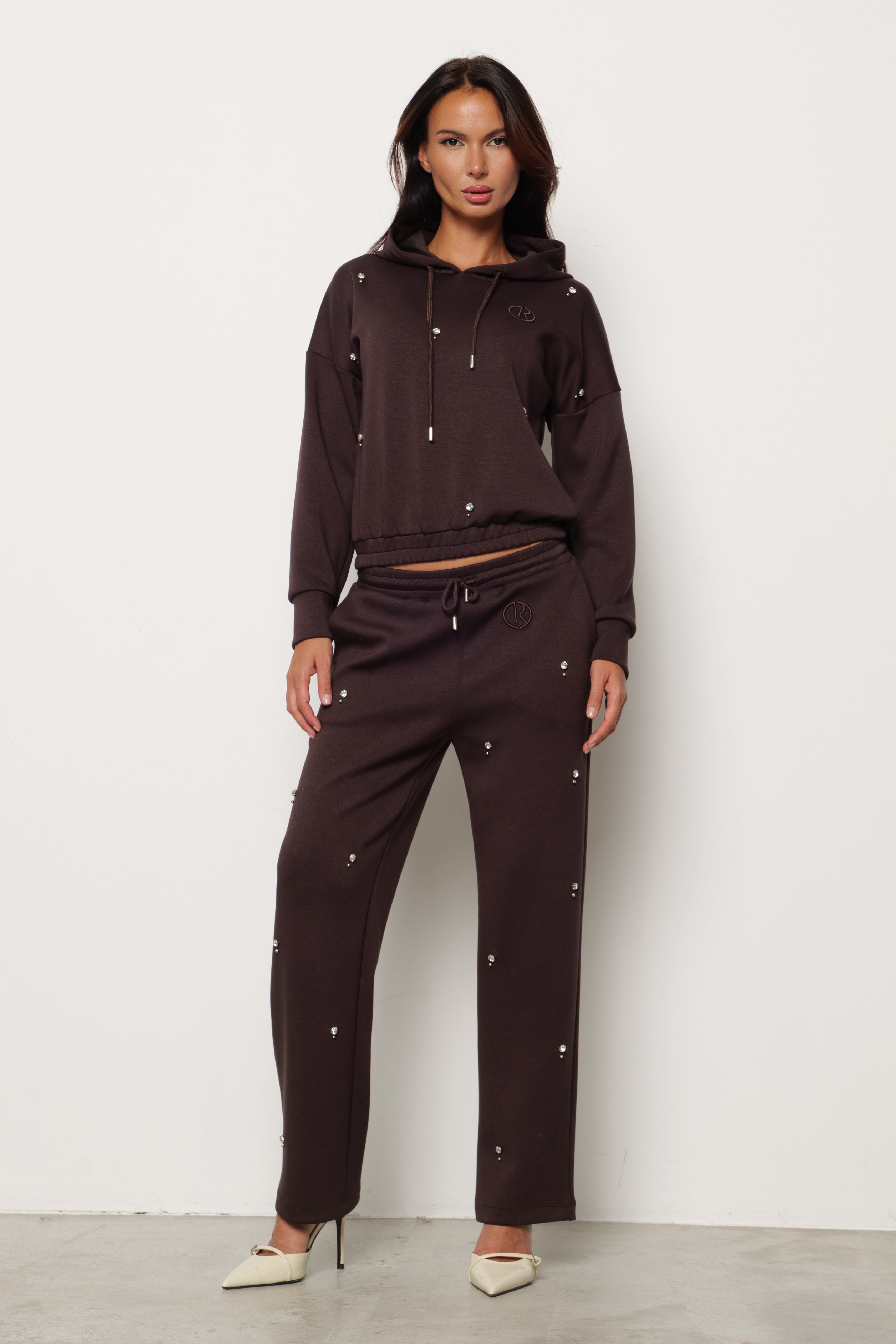 Felpa OLIMPO manica lunga con Arriccio più Cappuccio più Ricamo Logo più Applicazioni