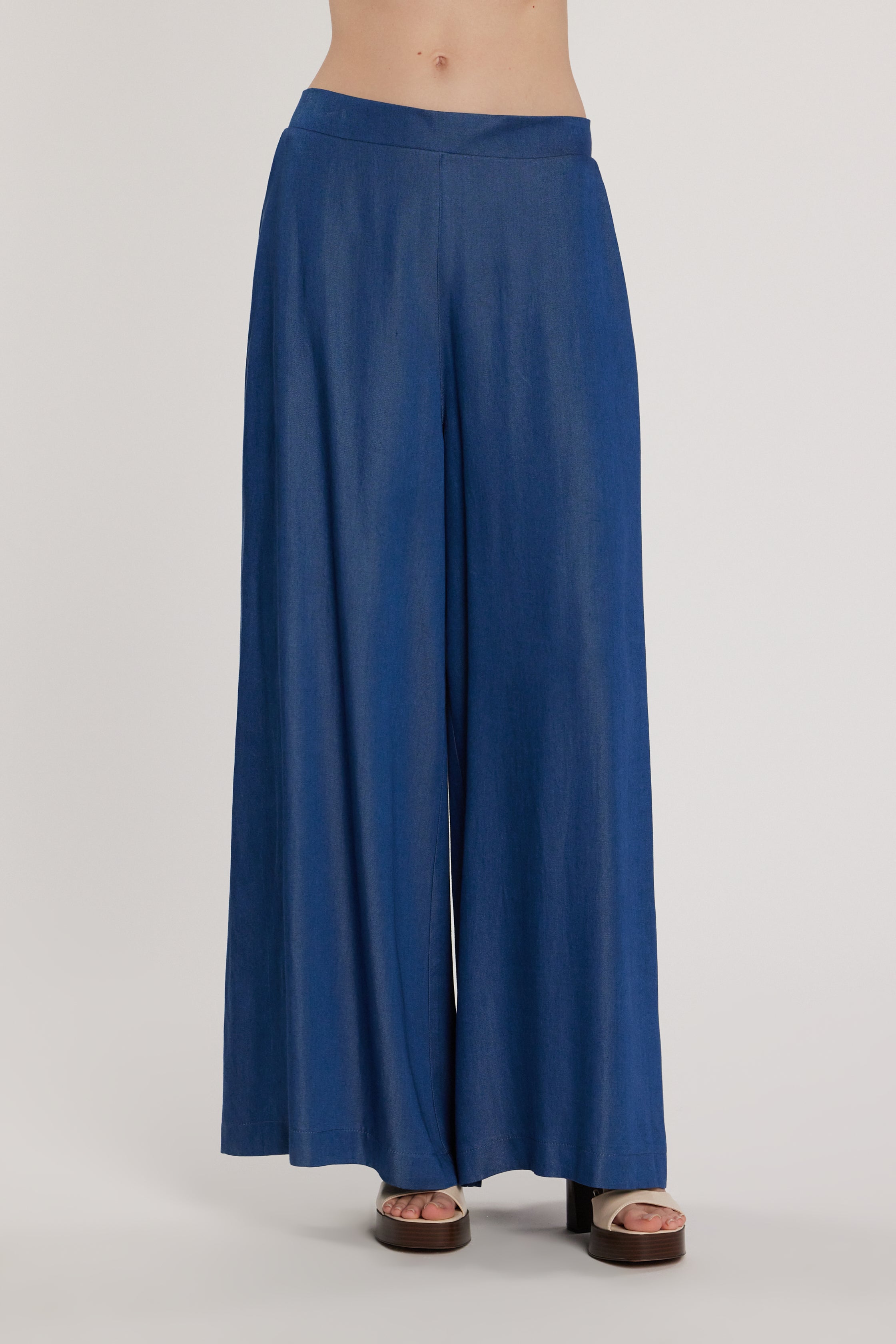 Pantalone CAMILLE vita alta palazzo con elastico più tasche denim