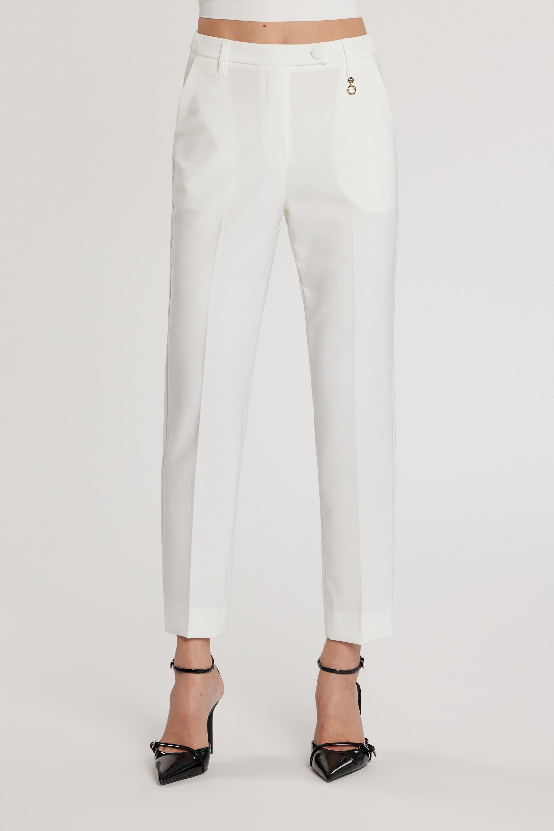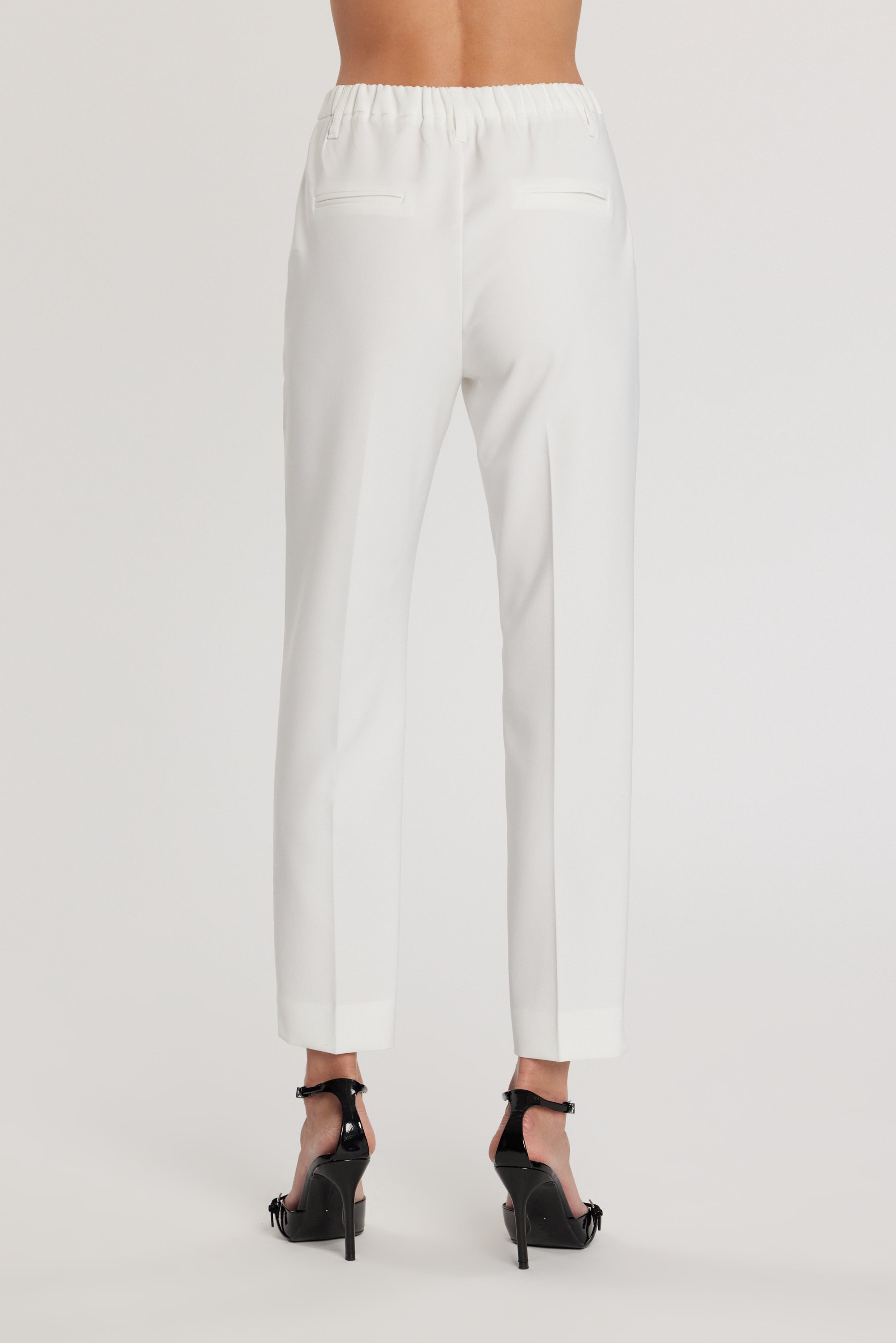 Pantalone Ostendo_A vita alta con elastico, tasche francesi e spacchetti sul fondo, un capo pratico e sofisticato. Gli spacchetti aggiungono movimento e slancio alla figura, rendendolo ideale per outfit moderni e versatili.