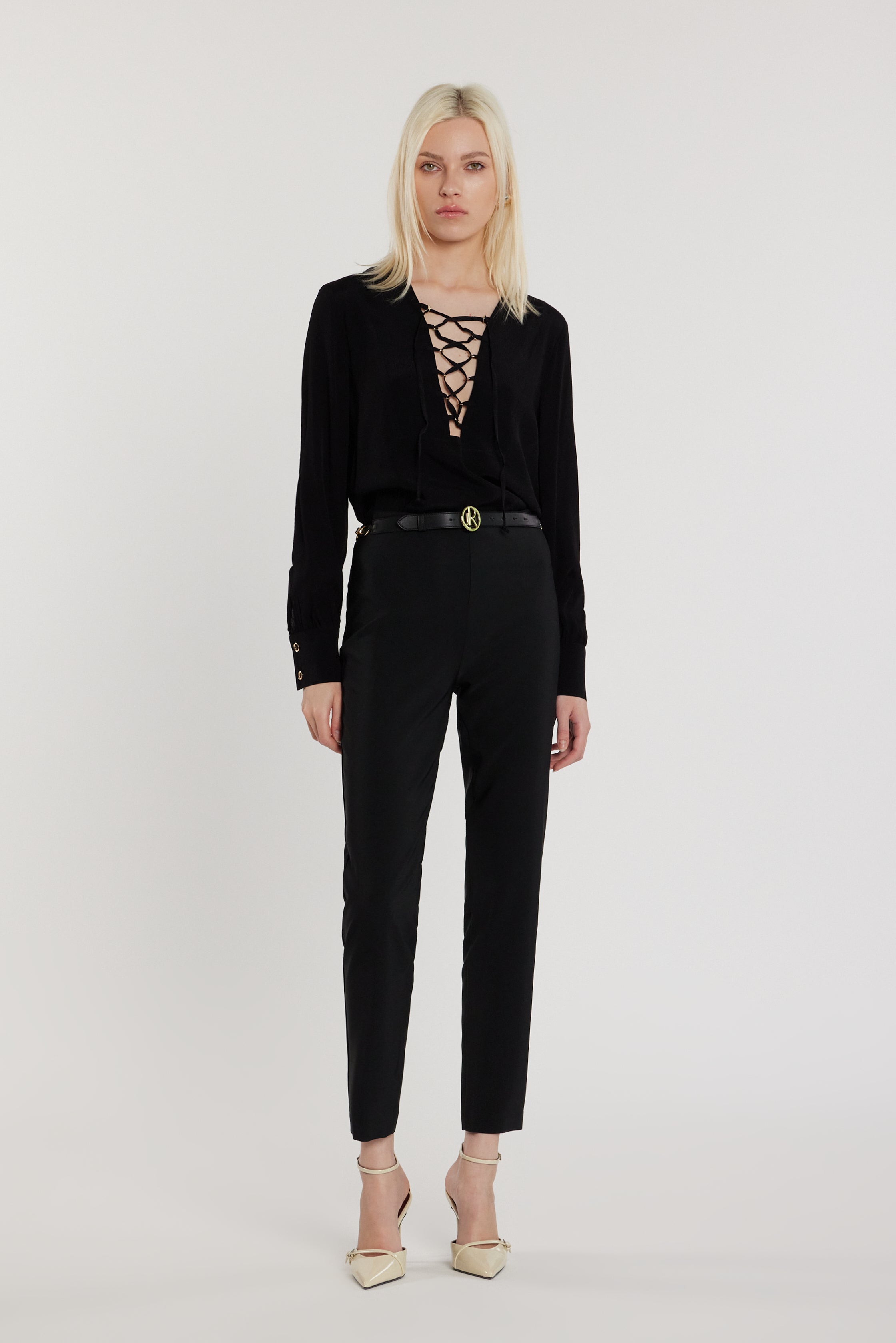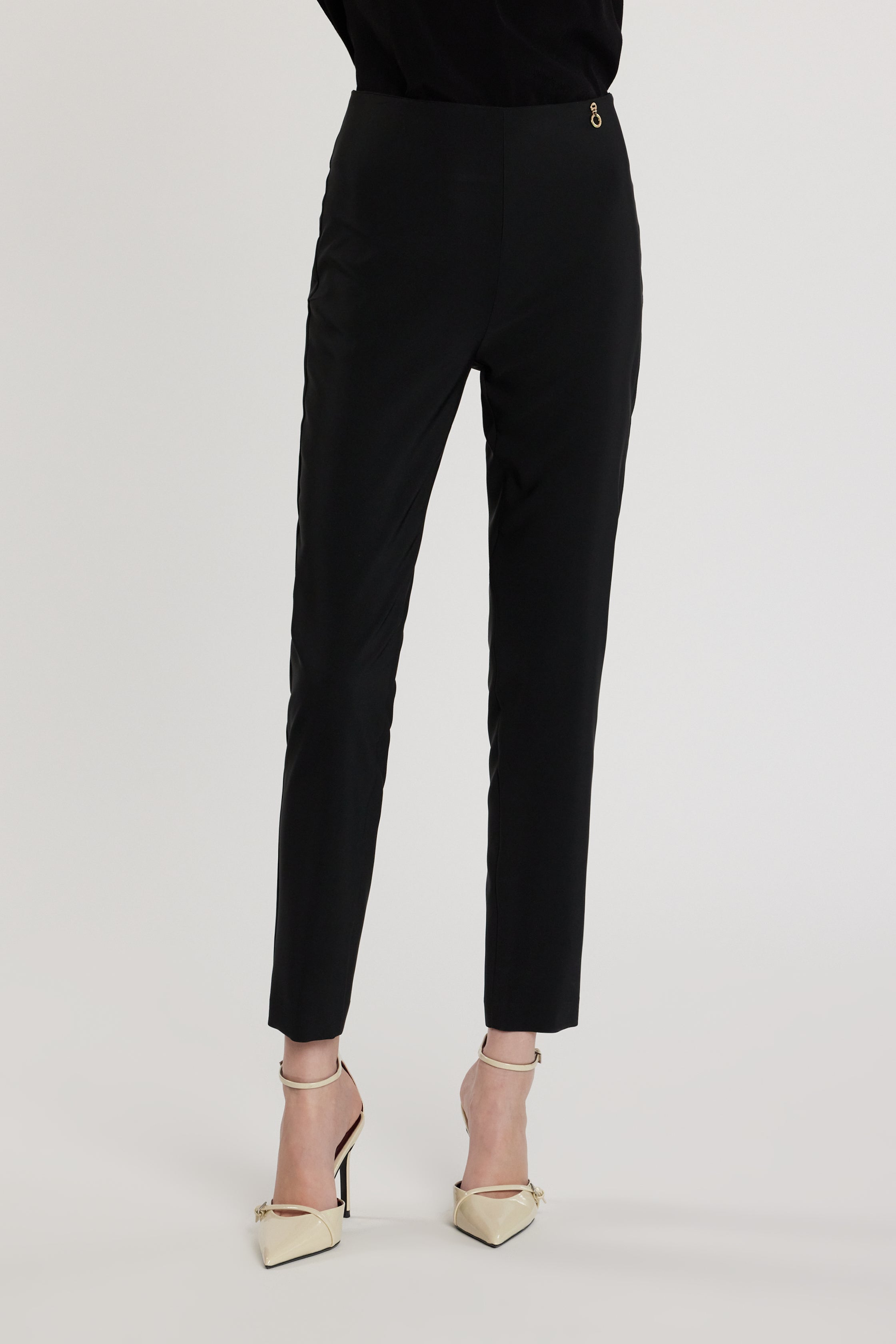 Pantalone Pammy vita alta capri dal taglio stretto, un capo essenziale e femminile che valorizza la silhouette. Il fit asciutto lo rende ideale per outfit eleganti da giorno o look casual chic.