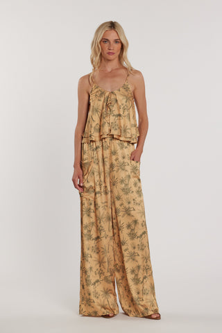 Pantalone SCARLETT vita alta palazzo con coulisse più tasconi fantasia tropical