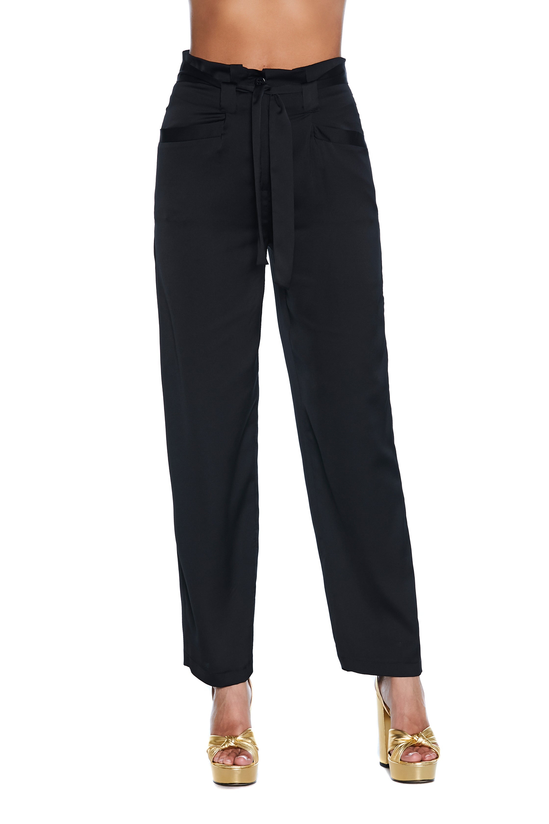 Panta NALA_BIS vita alta con cintura più tasche raso unito
