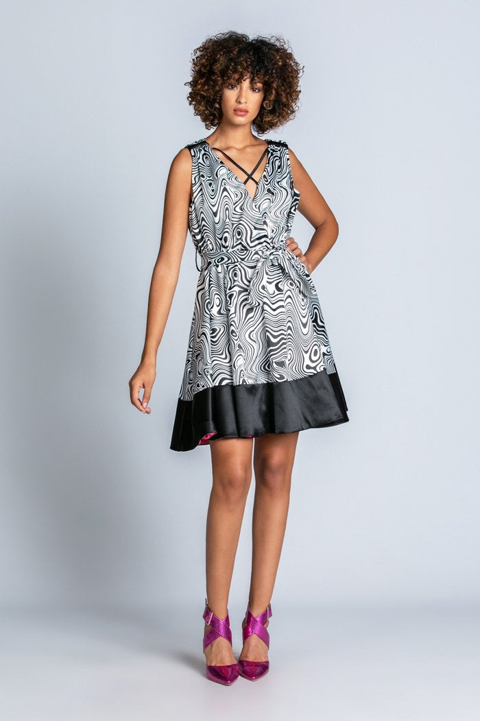 Abito HAFFNER corto senza maniche con laccetti più arriccio più cintura vita fant.optical