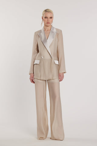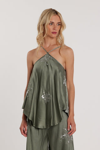 Tuta BELLYSA con top più Pantalone vita alta palazzo raso più ricamo fiori paillettes