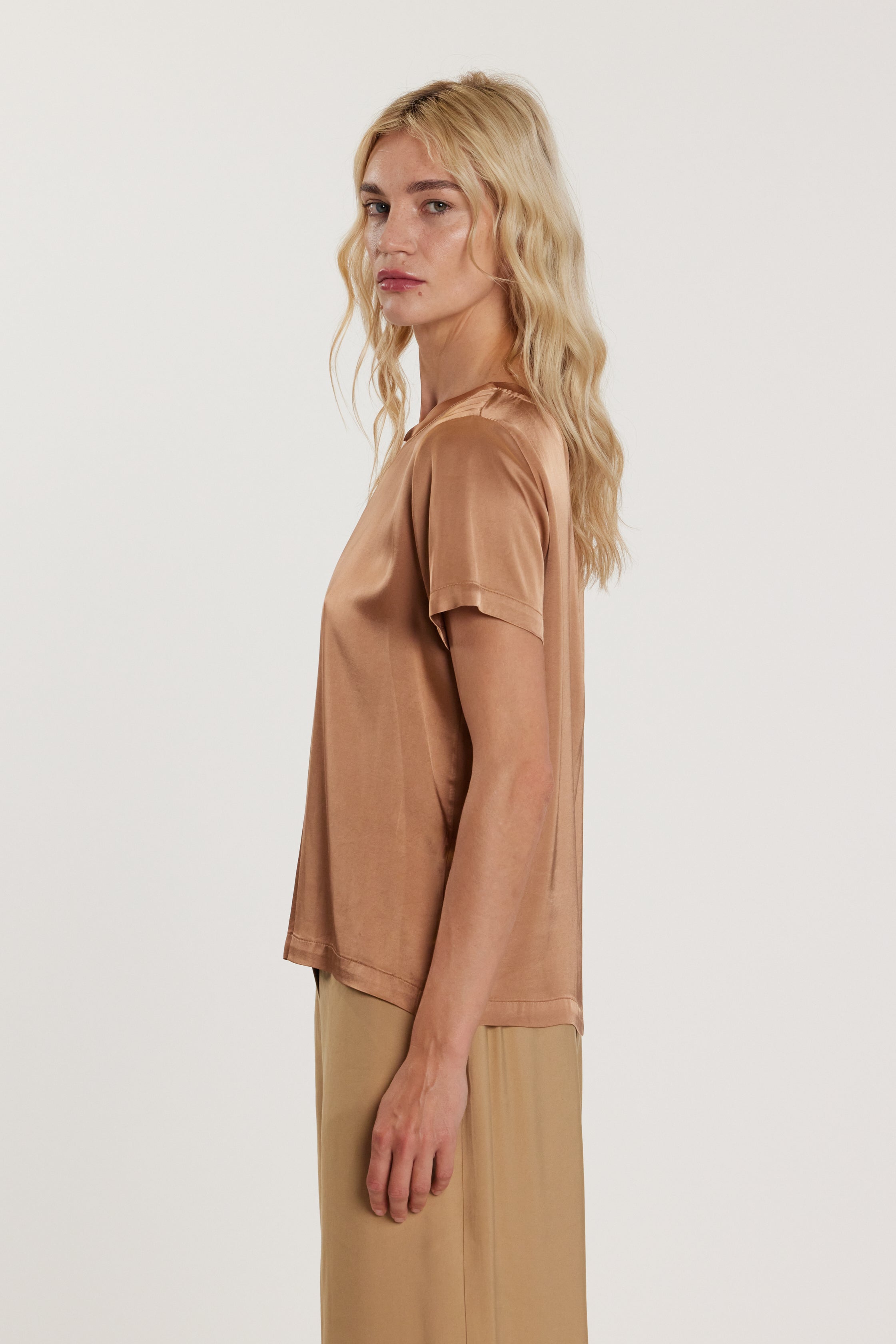 Blusa Ermione_S senza maniche con girocollo in raso, un modello romantico e raffinato. Il raso conferisce luminosità e fluidità, mentre il girocollo valorizza il décolleté con charme couture discreto. Ideale per cocktail o outfit serali eleganti.