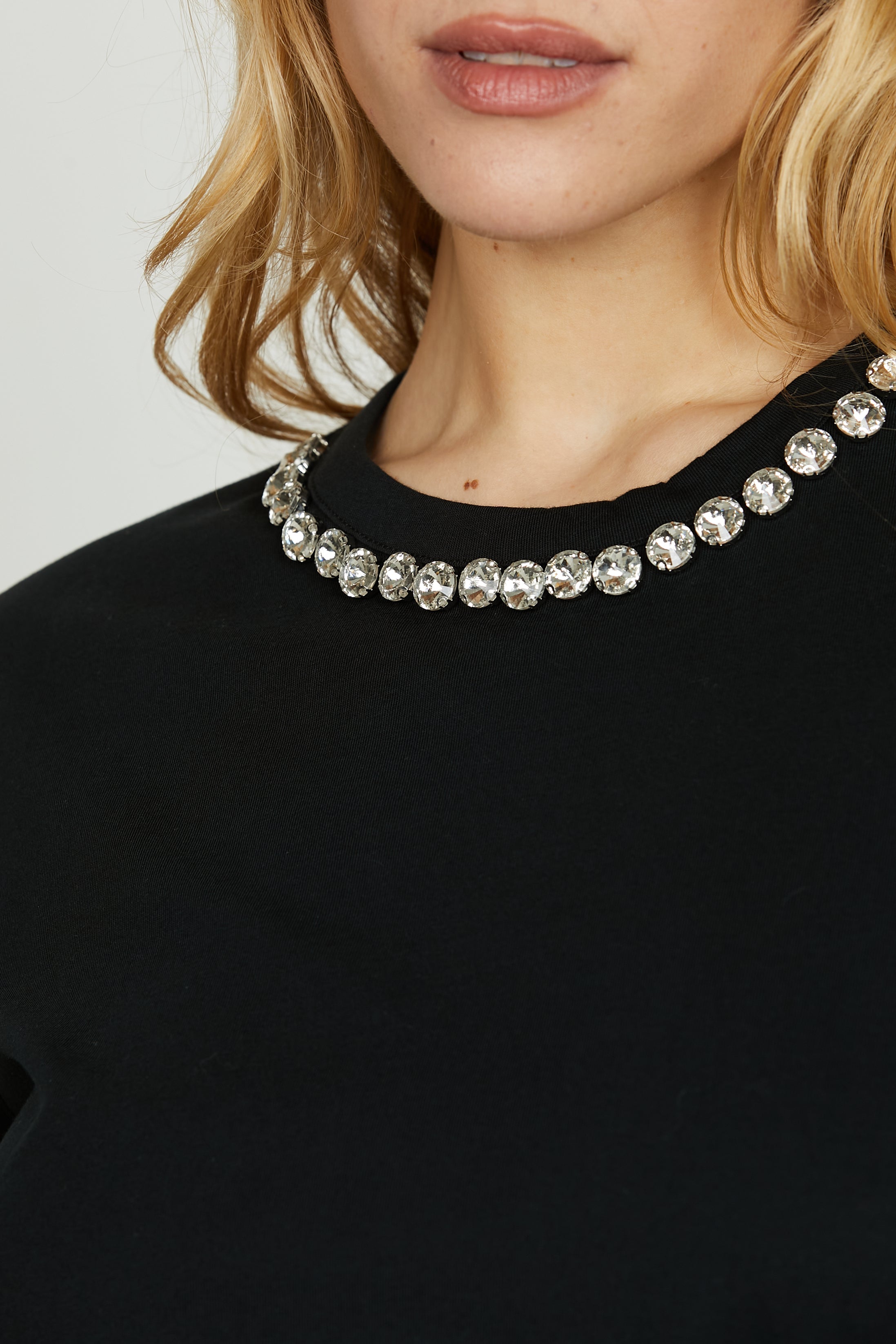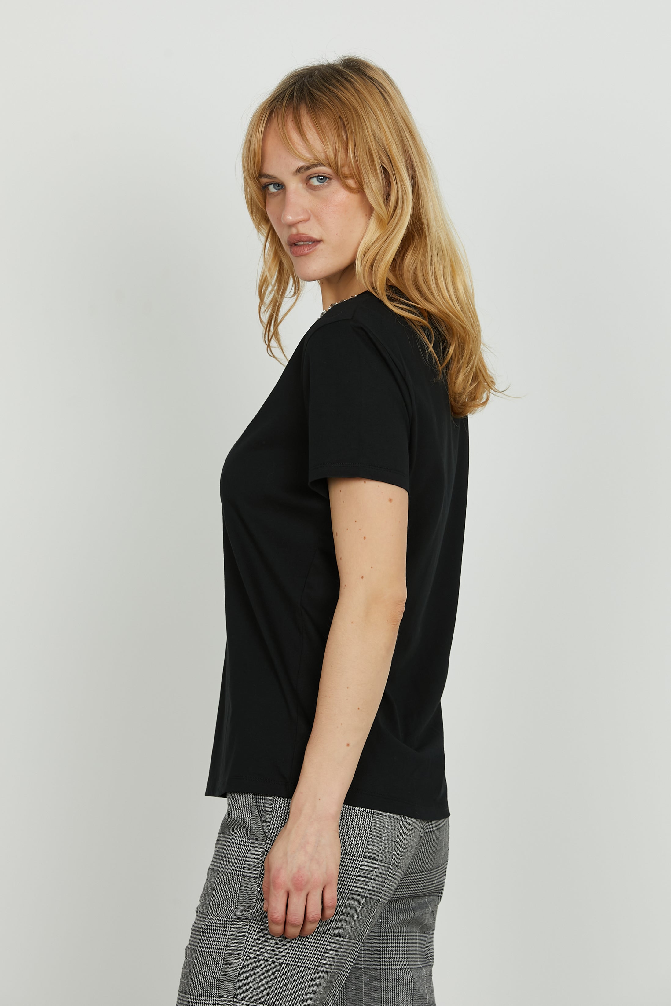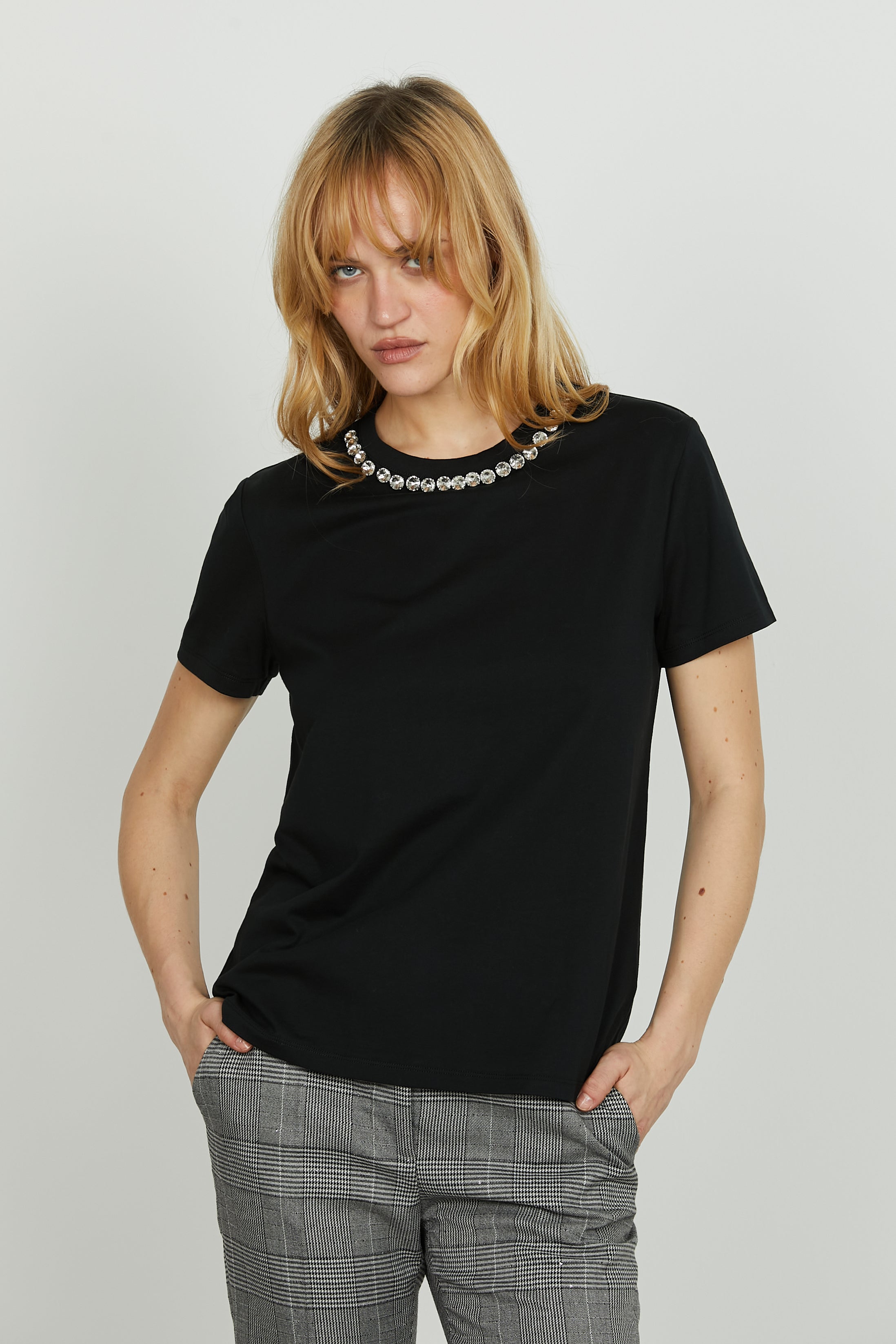 T-shirt SANTISI mezza manica con pietre strass bordo collo
