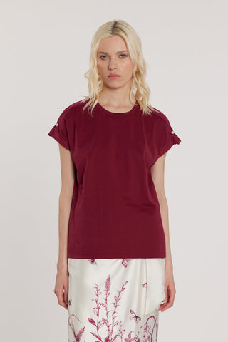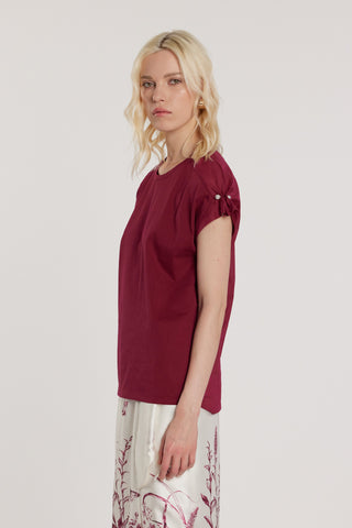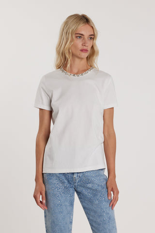 T-Shirt TAVORY maniche corte aletta con pieghe più applicazione perle