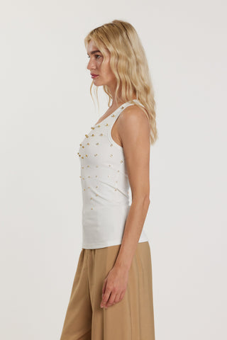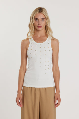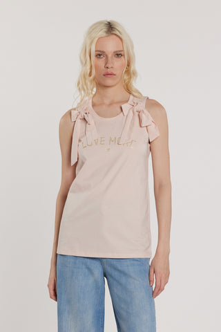 T-Shirt AIMEE smanicata con fiocco sulla spalla più arricciatura sul fondo