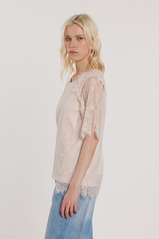T-Shirt MASCARA maniche corte con inserti pizzo più stampa più strass