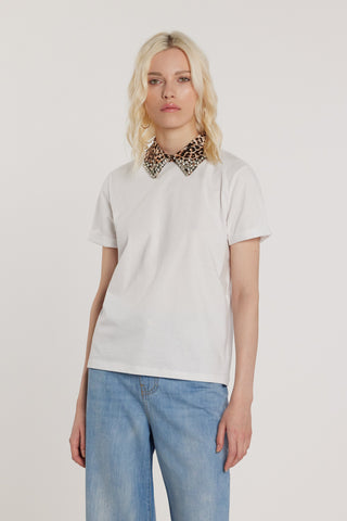 T-Shirt ARLETTI maniche corte con risvolto più colletto animalier più applicazioni gioiello più goccia