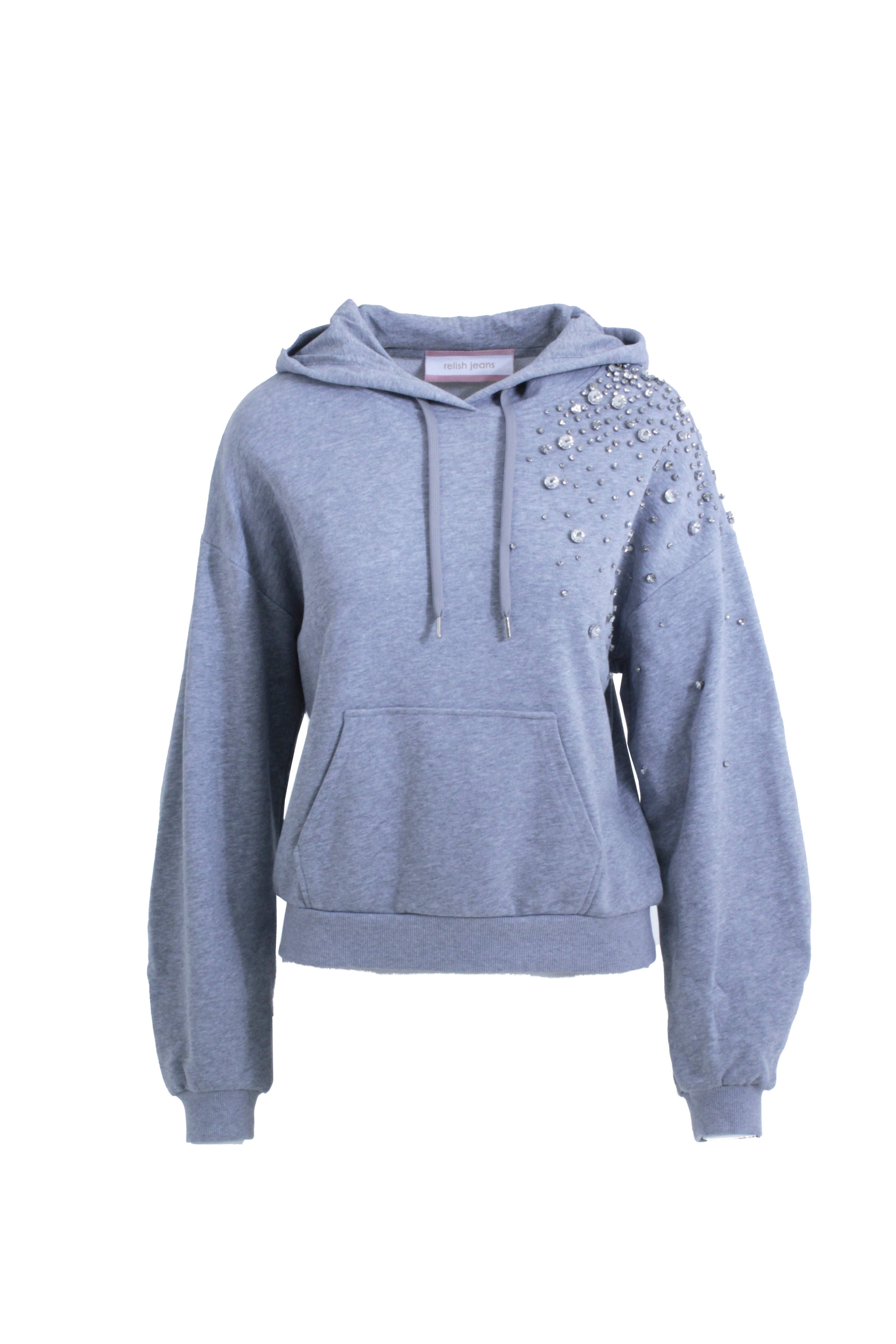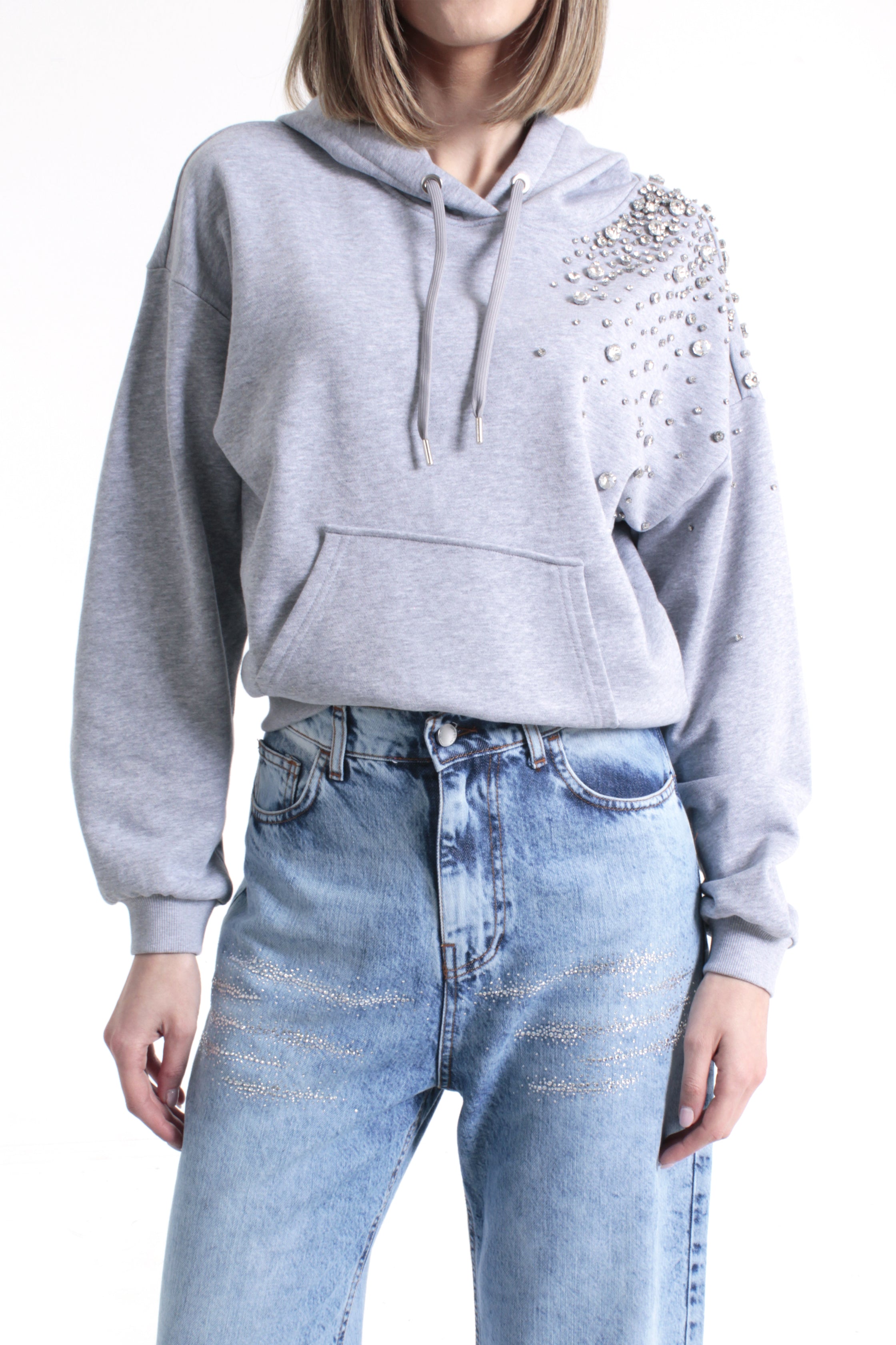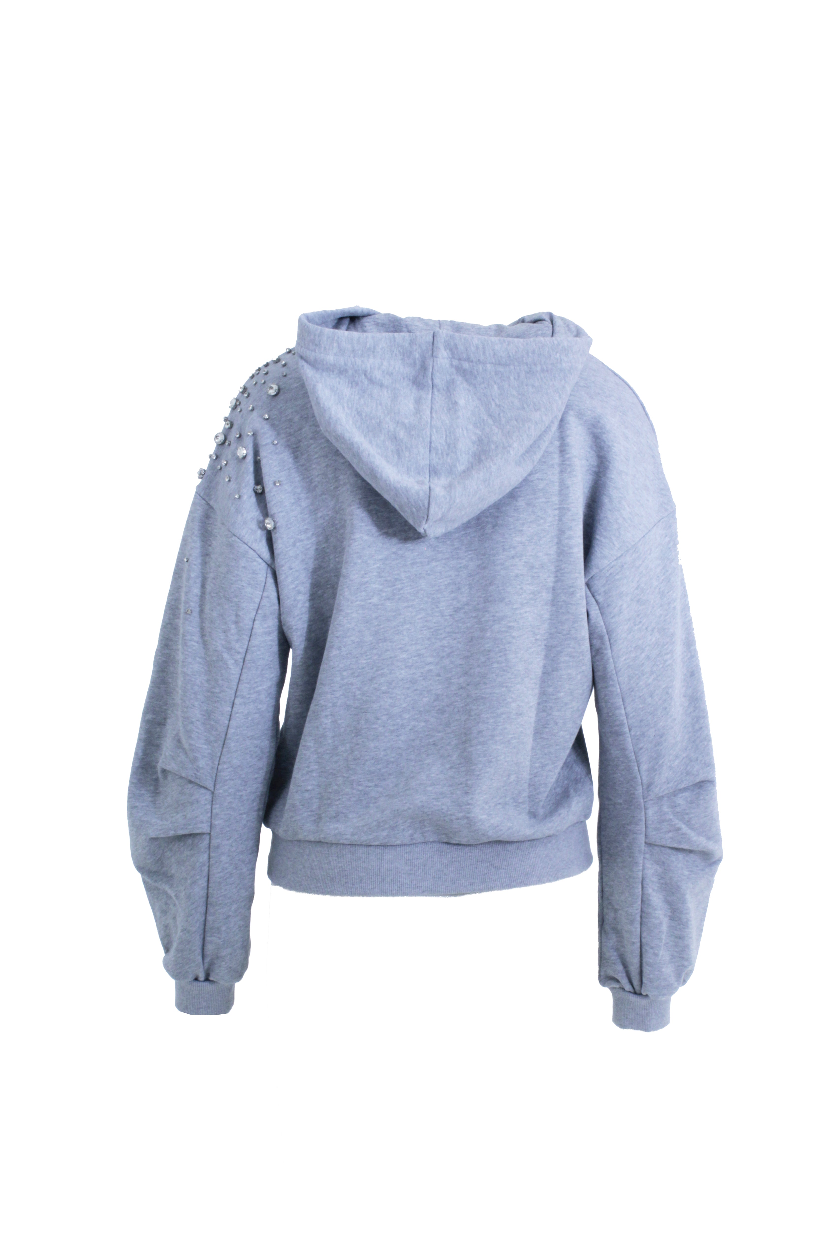 Felpa JOLIE maniche lunghe con arricciatura più cappuccio con coulisse più applicazioni pietre più tasca marsupio