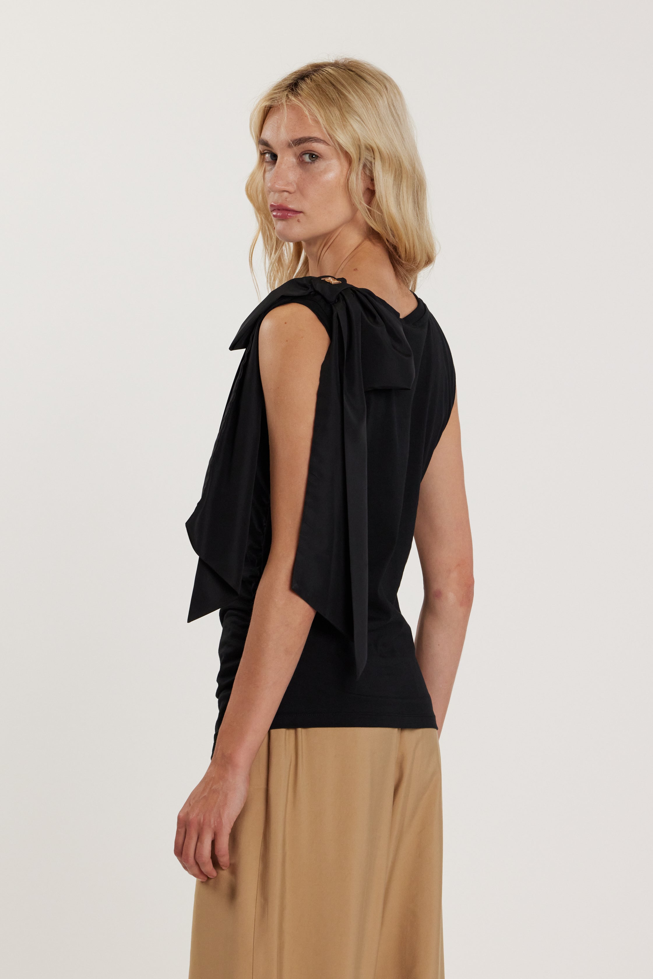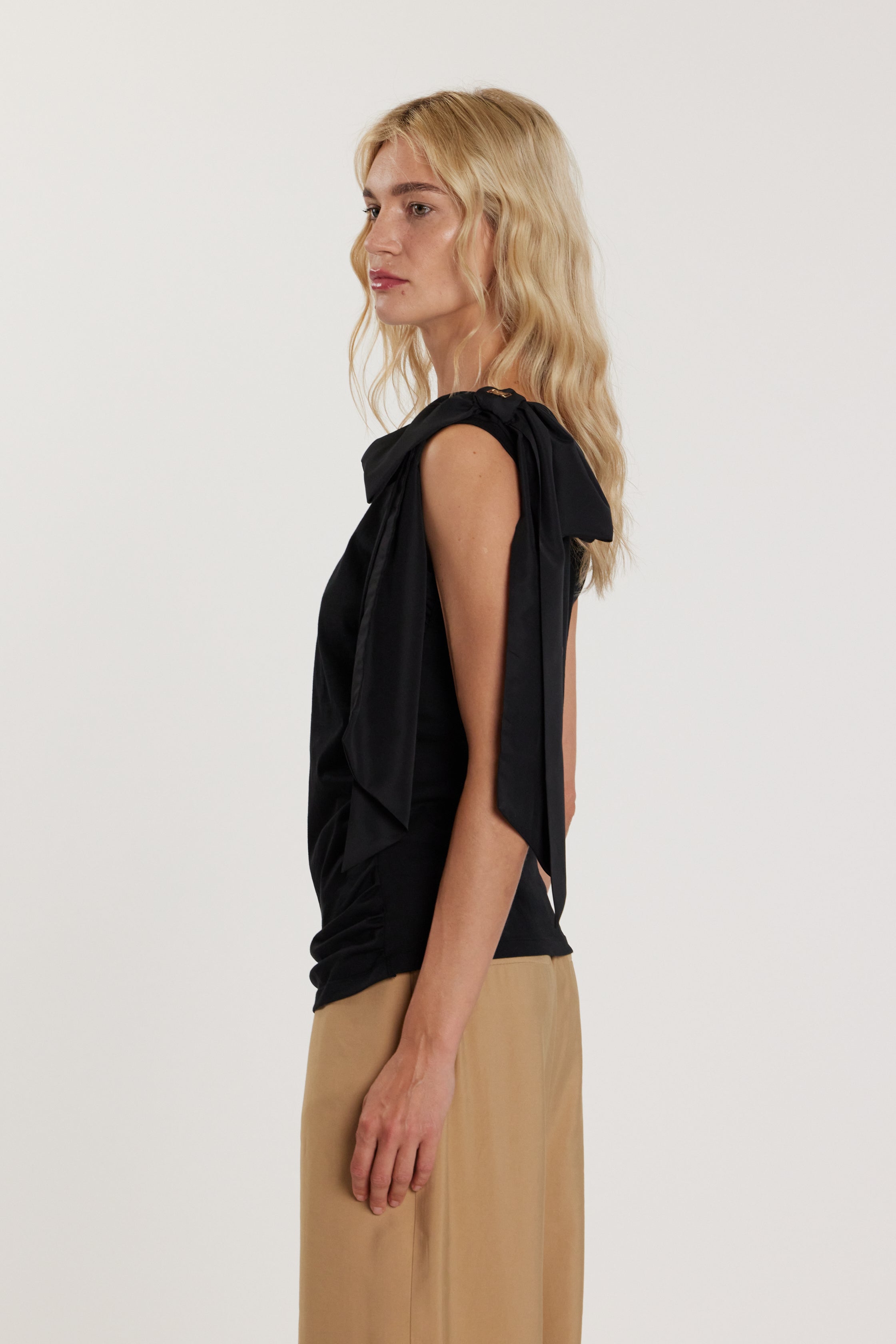 T-Shirt AIMEE smanicata con fiocco sulla spalla più arricciatura sul fondo