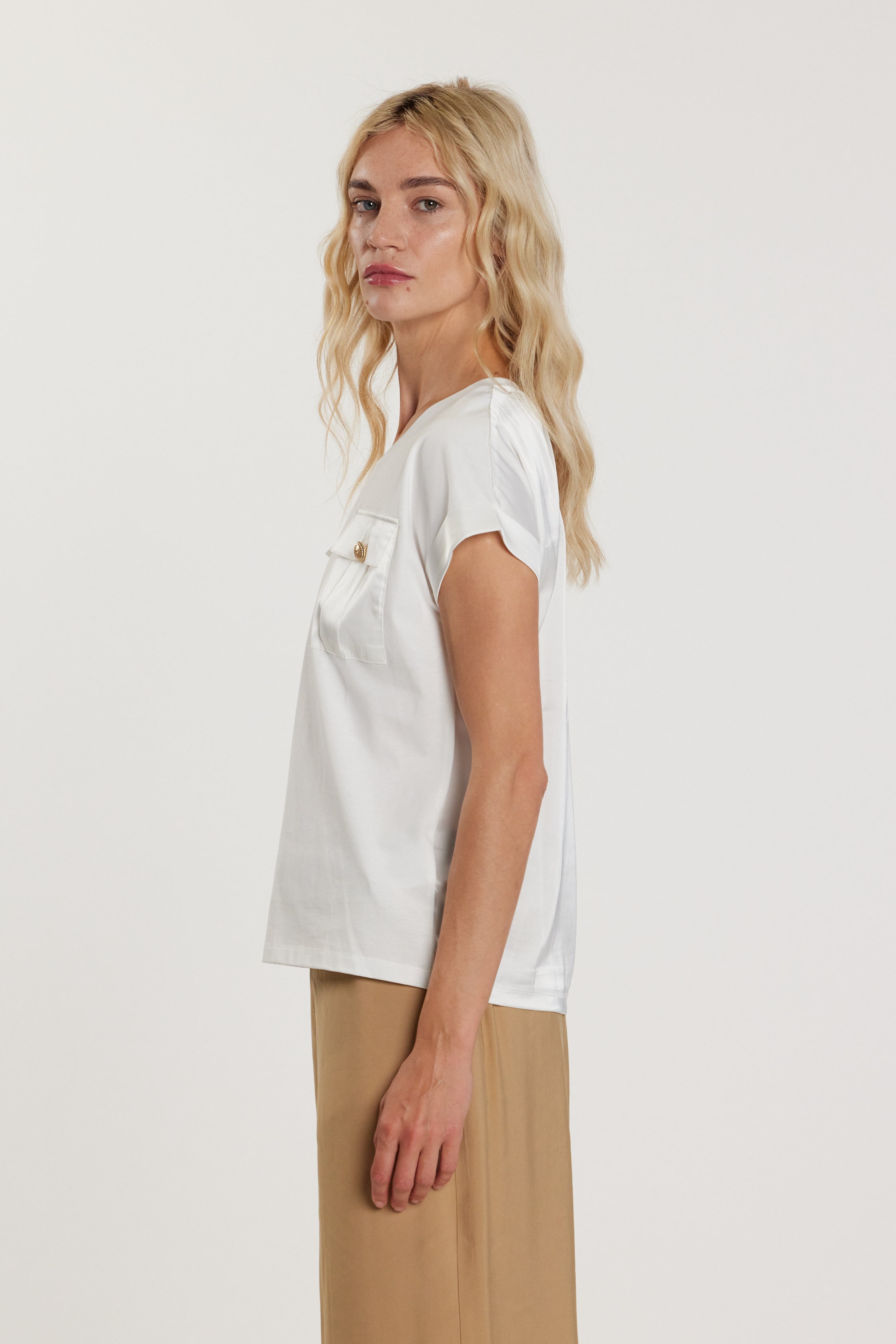 T-Shirt ANTOINE maniche corte con risvolto più inserti in raso più tasche con bottoni