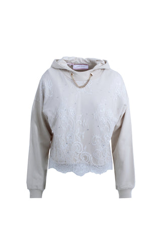 Felpa MONICAE maniche lunghe con cappuccio più catena logo più inserto pizzo con strass