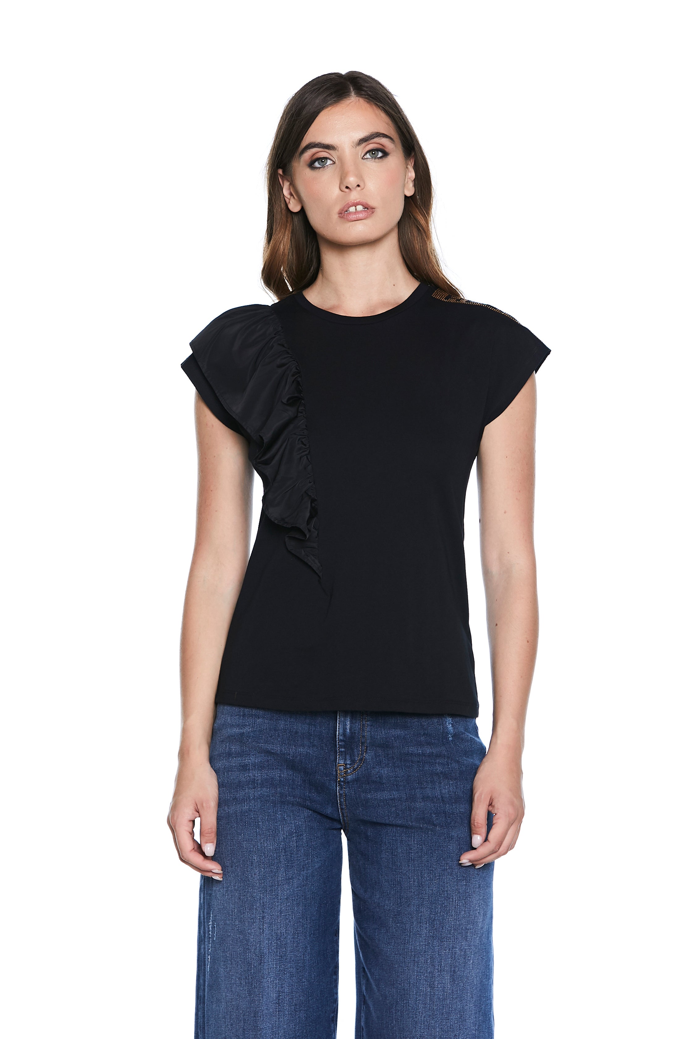 T-Shirt SHILER mezza manica aletta con applicazione strass più rouches tafta