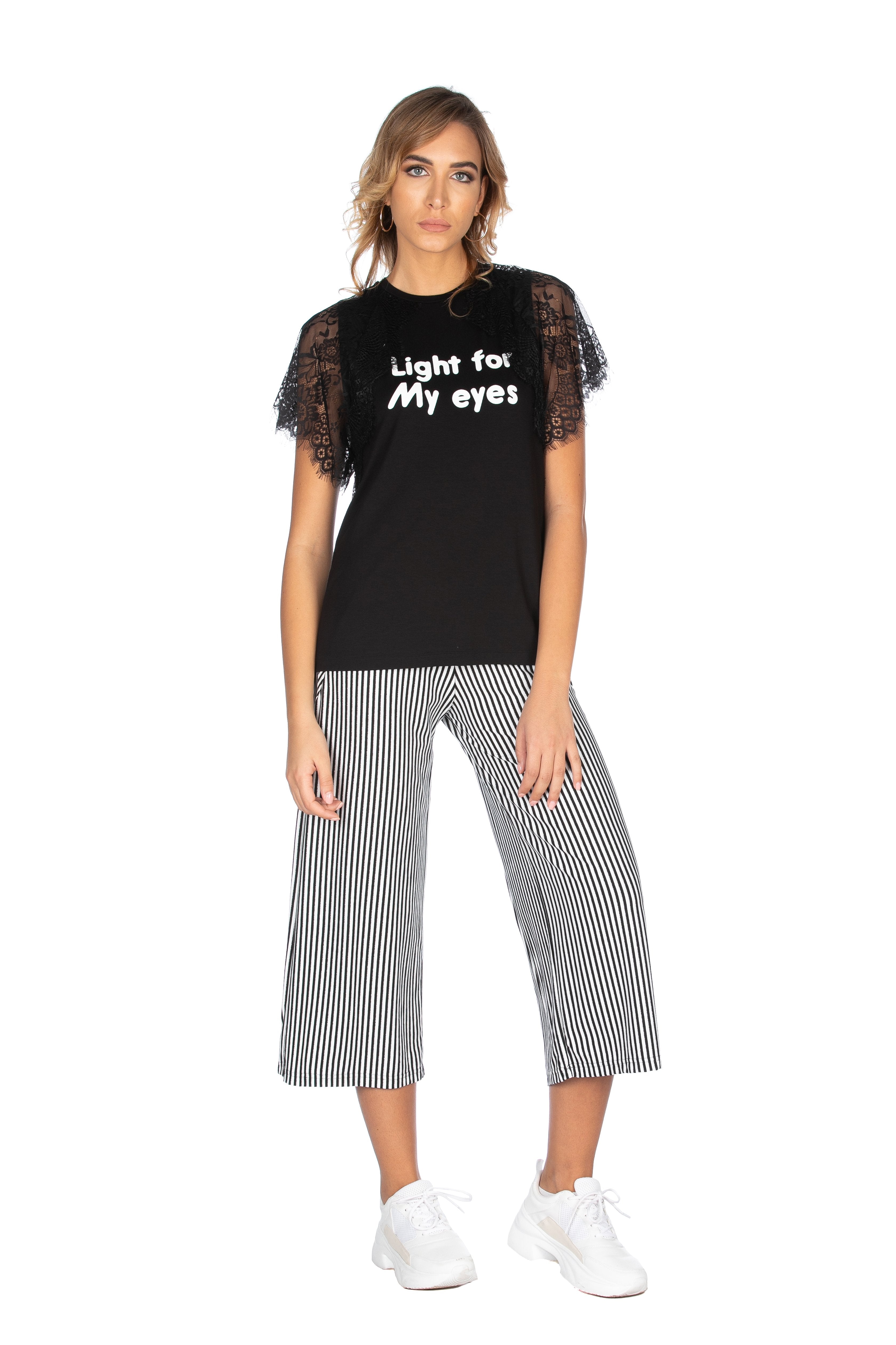 Luce per i miei occhi" è quello che penserà chiunque vi vedrà indossare questa T-shirt. Così semplice ma dalle maniche così ricercate che la rendono leggera e protagonista del look. Adatta per ogni abbinamento: sia con i jeans sia da inserire dentro ad una gonna a vita alta o da sdrammatizzare con ad esempio il pantalone VARESIAN.
