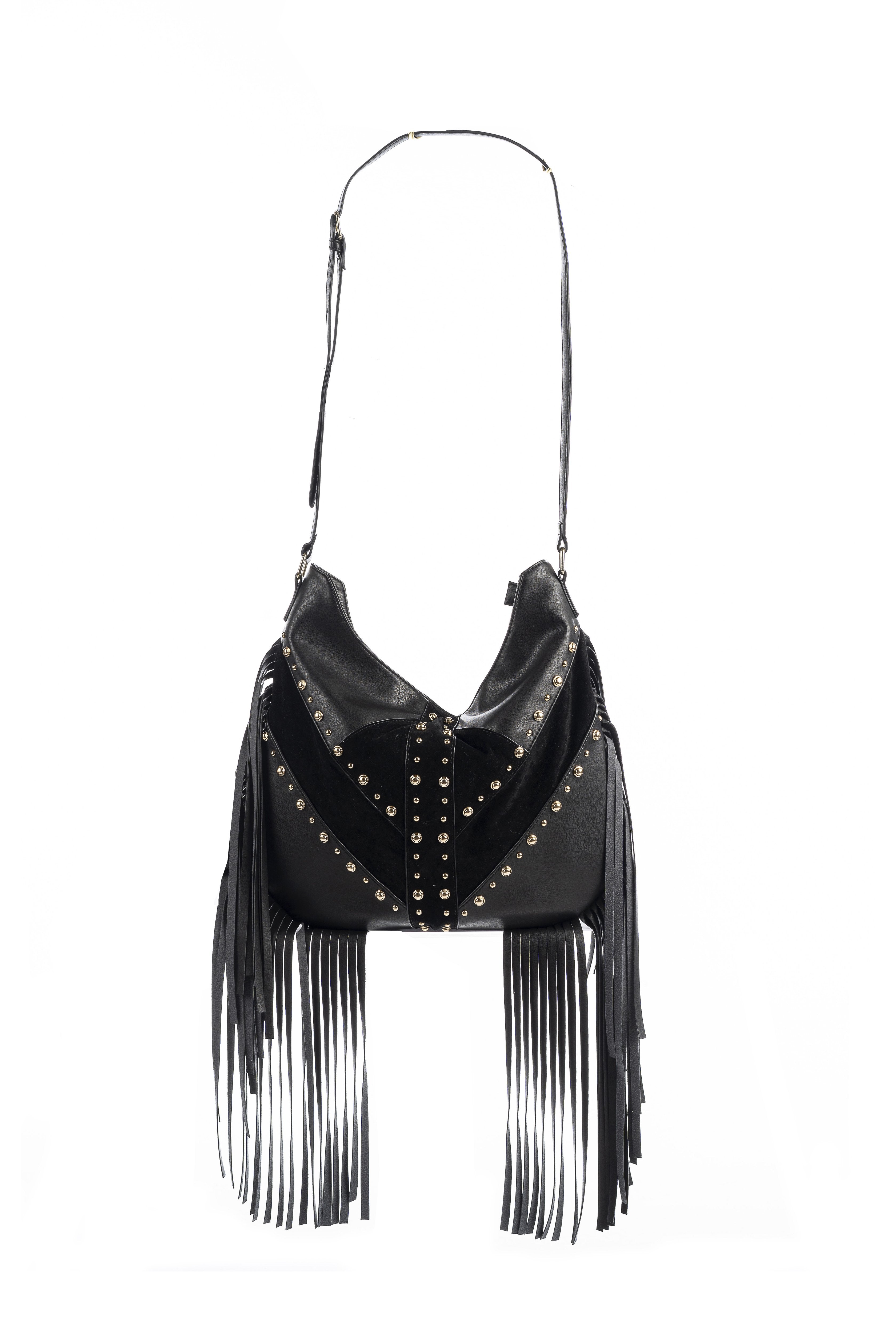 Borsa SUFFOK con tracolla più bulls più frange ecopelle con contrasti ecocamoscio.